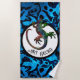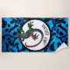 Art Gecko Esta toalla está decorada con una hermosa silueta de gecko multicolor en círculo. El fondo es un patrón purpurina ondulado negro y azul que recuerda al agua. El gracioso texto que dice "Art Gecko" es una referencia al "Art Deco", puedes personalizar como quieras.