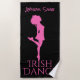 Chica de silueta irlandés bailando con el dedo del pie de los zapatos duros en la toalla de playa de danza negra y rosa. Personalizado con un nombre o cualquier texto que desee agregar. ^