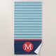 Toalla De Playa Banda azul rojo Monograma blanco Masculino