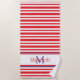 Toalla De Playa Banda roja y blanca con monograma azul marino