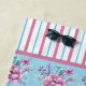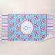 Floral se une a las rayas con este diseño floral rosado y con el guarnecido rayado. El suave fondo azul (que se puede personalizar) tiene un patrón de ramos florales rosas. En la parte superior e inferior de la toalla hay una banda de rayas rosas, azules y blancas. En el centro del diseño hay un círculo con una sola inicial, que se puede personalizar.