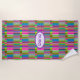 Warm, tropical colors and an unusual design make this beach towel outstanding! Bands of color--pink, blue, green, and others--in blocks and stripes create a modern design that you will love.