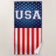 Esta toalla de playa patriótica inspirada por la bandera americana, características que alternaban rayas rojas y blancas, 50 estrellas de plata fijó en un fondo azul, y las letras los E.E.U.U. en el centro.