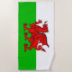 Toalla de playa con la bandera de Gales y un dragón rojo de fondo verde y blanco. La bandera de Gales también se conoce como Baner Cymru o Y Ddraig Goch. ¡Personalizable.