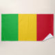 Este diseño presenta la bandera nacional de Mali (oficialmente conocida como la República de Mali), que es un país sin litoral en África Occidental. Malí limita con Argelia al noreste; Níger al este; Burkina Faso al sudeste; Costa de Marfil al sur; Guinea al sudoeste; y Senegal al oeste y Mauritania al noroeste. Las fronteras del país en el norte llegan hasta el medio del desierto del Sahara, mientras que la religión meridional de Mali, donde vive la mayoría de sus habitantes, incluye los ríos Níger y Senegal. La ciudad capital de Mali es Bamako, que también es la ciudad más grande del país. Otras ciudades y pueblos importantes de Malí son Sikasso, Koutiala, Ségou, Kayes, Mopti, Kalabancoro, Gao, Kati y San.