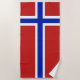 La bandera de Noruega es un rojo con una cruz escandinava de color índigo azul, adornada con un blanco que se extiende hasta los bordes de la bandera; la parte vertical de la cruz se desplaza hacia el lado del pabellón al estilo del Dannebrog, la bandera de Dinamarca.