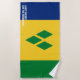Bandera de San Vicente y las Granadinas Splendid Patriotic Beach Toel con la bandera de San Vicente y las Granadinas impresa por toda la toalla. Los colores de la bandera nacional se complementan con el texto "San Vicente y las Granadinas" en la parte inferior. El texto es totalmente personalizable usando la función "Personalizar". Siéntase libre de cambiarlo, eliminarlo o añadir el suyo propio. Este encantador diseño es el impresionante regalo y la gran pareja para el día soleado en la playa. © 2023 Países Del Mundo