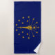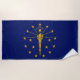 Este diseño presenta la bandera estatal de Indiana, que es un estado de los Estados Unidos en las regiones del Medio Oeste y los Grandes Lagos de Norteamérica. Limita con el lago Michigan al noroeste, Michigan al norte, Ohio al este, el río Ohio y Kentucky al sur y el sudeste, y el río Wabash e Illinois al oeste. Indiana fue admitida en Estados Unidos como el estado número 19 el 11 de diciembre de 1816. La bandera de Indiana fue diseñada por Paul Hadley y adoptada oficialmente por el estado de Indiana en 1917. La bandera consiste en una antorcha de oro que representa libertad e iluminación; los rayos alrededor de la antorcha representan su influencia de largo alcance. Las diecinueve estrellas representan el lugar de Indiana como el decimonoveno estado en unirse a Estados Unidos. Las trece estrellas del circuito exterior simbolizan las Trece Colonias originales, las cinco estrellas interiores representan los cinco próximos estados añadidos a la Unión, y la única gran estrella encima de la antorcha representa a Indiana. La ciudad capital de Indiana es Indianápolis, que es también la ciudad más grande del estado. Otras ciudades importantes de Indiana son Fort Wayne, Evansville, South Bend, Carmel, Fishers, Bloomington, Hammond, Gary, Lafayette, Muncie, Noblesville, Terre Haute, Greenwood, Kokomo, Anderson, Elkhart, Mishawaka y Lawrence.