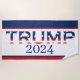Esta patriótica toalla de playa de la campaña presidencial de Donald Trump 2024 muestra el nombre "Trump" impreso en un patrón de bandera estadounidense. Las estrellas están impresas en la mitad superior y las rayas en la parte inferior. El año electoral "2024" está impreso debajo en una fuente azul marino. Las partes superior e inferior de la toalla incluyen carteles azules y rojos.