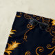Dieses Bild zeigt ein nahtloses barockes Muster mit goldenen und gelben floralen Ornamenten auf dunklem Hintergrund. Die detailreichen, symmetrischen Elemente verleihen dem Design einen luxuriösen, klassischen und eleganten Charakter, ideal für Tapeten, Textilien oder hochwertige Oberflächengestaltung.