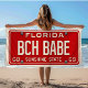 Travel back in time to the year 1969 with this vintage-inspired BCH BABE license plate design. Bold embossed-style cream text pops on the red contrast. The use of retro-style lettering, realistic screws and Sunshine State slogan keep the vintage vibe realistic. This unique towel is perfect for your next beach day, surf session, boat trip or pool party.