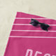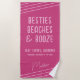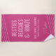 La toalla de playa Personalizado rosado caliente con Chicas DIY divertido Vip Cita como "Besties Beaches & Booze" - o cualquier texto personalizado - con nombre personalizado, ubicación, ocasión y fecha con rayas diagonales y un moderno tipo de letra de escritura de firma casual. Cambie los colores y las fuentes a lo que desee y diseñe su propia toalla de playa de soltera utilizando la Herramienta de diseño.