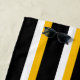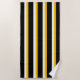 Toalla de playa de rayas negras, amarillas y blancas.