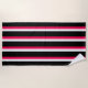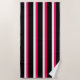Toalla de playa de rayas rosadas, blancas y negras.