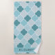 Toalla De Playa Blue Moroccan Trellis, Quatrefoil, tu nombre