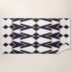 Esta toalla de playa tiene un diseño Art Déco de triángulos y diamantes que parecen corbatas azules y doradas.