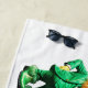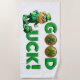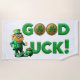 Un Leprechaun gracioso con un traje verde con barba roja y una moneda de oro en la mano te desea buena suerte.