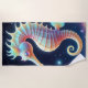 Este diseño presenta un caballito de mar amarillo ajustado a un fondo cósmico.