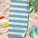 Toalla De Playa Cabana a Rayas con Nombre Rayado Teal y Blanco