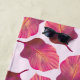 Un patrón botánico de ilustracion de hojas de la planta de la canna tropicanna. Están decoradas en tonos rosas y amarillos y muy claros con un fondo rosa claro.