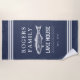 Toalla de casa de la casa de un lago azul marino con una imagen rústica de trucha y atrevida tipografía serif. Personalice este diseño con su apellido y año. Personalizar este diseño seleccionando el enlace "personalizar adicional" si lo desea.