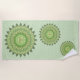 Celebre el Día de San Patricio con esta mandala de círculo concéntrico con capas de tejas celtas en múltiples tonalidades de verde con un toque de naranja para el acento.