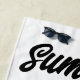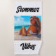 TOALLA DE PLAYA CON PINTURA ÚNICA DE CHICA/MUJER EN PLAYA CON SOMBRILLAS Y PELO EN BREEZE.VIBOS DE VERANO Y SENTIMIENTO DE SOL DE DIVERSIÓN