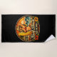 Este diseño inspirado en el retro captura la energía vintage de la cabaña de surf de California con una surfista rubia pin-up agarrando su tabla de surf, olas estrellándose en la playa, con una furgoneta antigua en el fondo. El lema 'monta la ola', junto con flores de hibisco tropicales completan el gráfico del atardecer costero salado. Esta toalla negra audaz es la forma perfecta de llamar la atención en tu próximo día de playa o fiesta en la piscina.