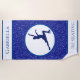 Ilustración Toalla de playa personalizada para chicas que aman estar sobre hielo cuando no están en la playa. Este diseño tiene un fondo de purpurina falso azul real con una hermosa silueta de patinaje artístico sobre la espuma azul en el centro. Por encima de esto puede personalizar el nombre al de su patinador artístico, debajo de la figura patinaje artístico.