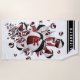 Esta divertida toalla de playa con tema de baloncesto presenta una "explosión" de marrón de tamaño variado, baloncesto negro y blanco y formas de estrella de marrón y gris sobre un fondo blanco - un patrón de pequeños puntos de polka blanco cubre la estrella de marrón - personalizar con el monograma del atleta en el baloncesto más grande y nombre sobre rayas de varsidad negras de orientación vertical - por katz_d_zynes