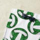 Esta toalla de playa personalizada de colores para chicas de voleibol presenta un patrón de pequeñas bolas de voleibol estilizadas verdes y blancas dispuestas en un patrón espejado sobre un fondo blanco personalizable - personalizado con su nombre y número jersey - por katz_d_zynes