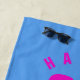 Toalla de playa moderna con una frase inspiradora y graciosa: "Si fueras una tortuga seguirías siendo un adolescente", con una colorida tortuga surfística al estilo personalizado. texto personalizar y/o edad.