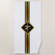 Toalla De Playa Clásico Monograma Faux Gold con texto blanco en bl