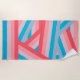 Esta toalla de playa tiene un diseño de rayas en grupos de cinco rayas que se cruzan entre sí a través del diseño azul, rosa, melocotón y coral. Si te gusta el diseño pero prefieres colores diferentes, envíame un mensaje.