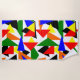 Esta toalla de playa tiene un diseño Bauhaus de un collage de triángulos en rojo, amarillo, naranja, azul y verde.