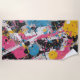 Dynamic abstract composition with bold splashes of pink, blue, yellow and black layered over textured white strokes. Energetic paint drips and spontaneous brush marks create a vibrant contemporary artwork full of movement, contrast and urban expression.
