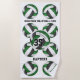 Esta toalla de playa espiritual del equipo de voleibol presenta un patrón de bolas de voleibol con estilo verde, negro y blanco, arregladas en un patrón de espejos con texto de personalizable entre las bolas de voleibol, actualmente nombre del equipo y nombre de la mascota - se puede personalizar el nombre del atleta y el número de camiseta, así como el color de fondo blanco y el texto negro - por katz_d_zynes