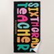Una divertida y colorida tipografía de "Sexto curso de profesores" diseña toalla de playa sobre un fondo negro. Hazlo especial personalizándolo con tu nombre! Una gran idea de regalo para la Semana de la Apreciación de los Maestros! Para preguntas o solicitudes relacionadas con este diseño, por favor contáctenos a través del chat; ¡estaríamos encantados de ayudar!