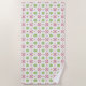 Colorful towel set featuring a geometric pattern with green hexagons and pink X's on a white background. Includes a hanging and a folded washcloth.
