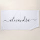 Toalla de playa moderna con un nombre de escritura negro y elegante sobre un simple fondo blanco. Personaliza con tu nombre.