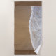 Toalla de playa con una foto de un lavabo blanco del océano que se derrama en la playa.