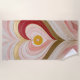 This is an abstract, symmetrical painting centered on a large heart motif that radiates outwards in concentric layers. The color palette is dominated by soft shades of pink and white, creating a gentle, flowing background texture that suggests organic movement or energy fields. The heart is defined by alternating bands of color, prominently featuring luminous gold leaf and a deep, solid red accent on the upper right side. The core of the heart is marked by a bright, yellow circle surrounded by smaller concentric rings. Delicate gold lines outline the major bands, emphasizing the structure and contributing to a sense of luxury and spiritual geometry. The overall composition is harmonious and uplifting.