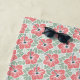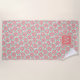 La toalla de playa monogramada de moda tropical presenta un patrón de flores de hibisco de coral y hojas verdes tropicales, con su monograma inicial centrado en el fondo.