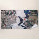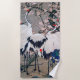 Arte vintage de una grúa en el estanque con flores de flores blancas.