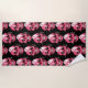 Toalla de playa de patrón calavera con un ilustracion personalizado de un divertido cráneo rosado con pómulos color rosa y dos fantasmas bonitos en los orificios de los ojos observándose unos a otros y una pequeña araña adorable sonriente sobre uno de estos amigos miedosos. Este divertido diseño macabro tiene colores psicodélicos brillantes, trippy, rosa y amarillo.