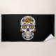 Toalla De Playa Cráneo de azúcar rosa amarillo en negro