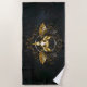 Toalla De Playa Cráneo de pájaro dorado sobre fondo negro