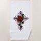 Toalla De Playa Cruz de Plata con una Rosa Roja