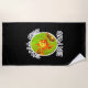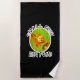 Esta toalla de playa está ilustrada con la imagen de un pez dorado con cara de bebé y el texto "PEQUEÑO PESCADO GRANDE POND"