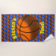Las baloncestas forman esta divertida toalla de playa. Personalizable para que pueda agregar su propio texto y cambiar el color de fondo. ¡Tome el sol con este diseño fresco!